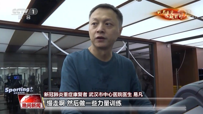 新冠肺炎重症康复者、武汉市中心医院医生 易凡:主要是恢复性的训练,不敢搞太剧烈的。慢走,然后做一些力量训练。