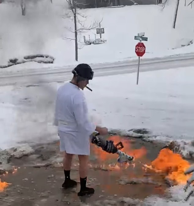 12月25日,在美国肯塔基州阿什兰,蒂莫西·布朗宁(Timothy Browning)用喷火器清除积雪的“硬核”瞬间被分享在社交媒体上。视频显示,布朗宁穿着白色浴袍、拖鞋,戴着帽子站在自己家门前的车道上。他左手拿着一罐啤酒,右手握着喷火器,对着地上的积雪喷出火焰,积雪瞬间便融化了。随后镜头一转,只见他嘴里叼着雪茄,走到车道前面继续除雪,可以看到部分地面上残留的燃料仍在燃烧。妻子贝丝(Beth)拍下了这段视频,布朗宁随后将视频分享在脸书上并写道:“布朗宁除雪服务。”社交媒体上许多人也渴望有自己的喷火器,还有人开玩笑地要预约他的服务。
