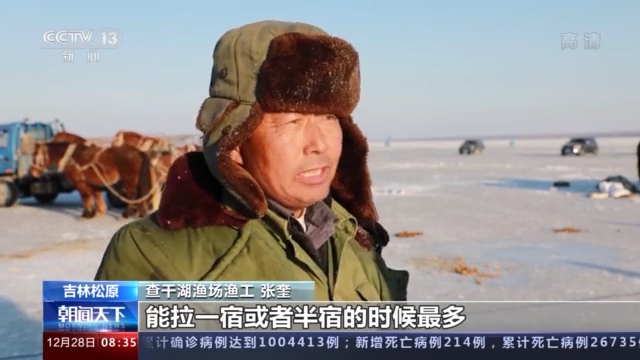 查干湖渔场渔工 张奎:正常打能拉一宿或者半宿,最多打几十万斤。