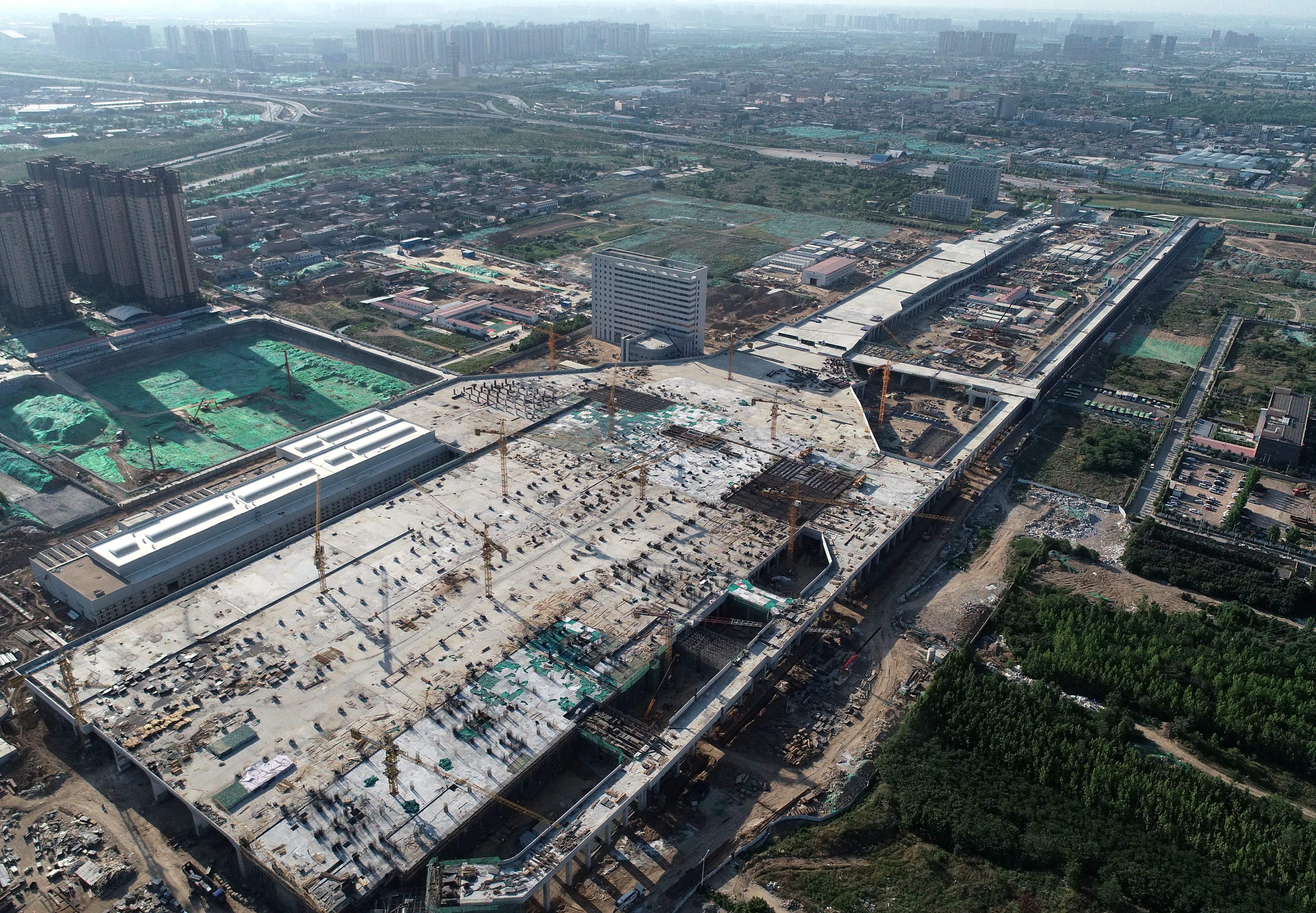 西安地铁5号线和平车辆段施工现场(5月29日摄,无人机照片)