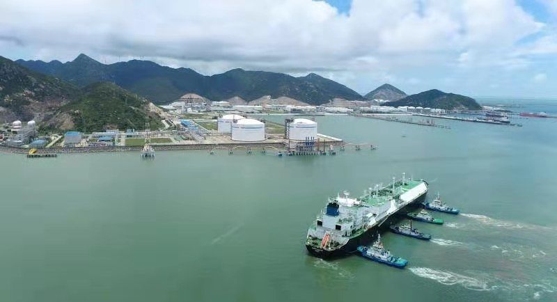 图为满载6.8万吨LNG的“Golar Celsius”号LNG船在中国海油珠海LNG接收站成功卸载。(图片来源:中国海油气电集团)