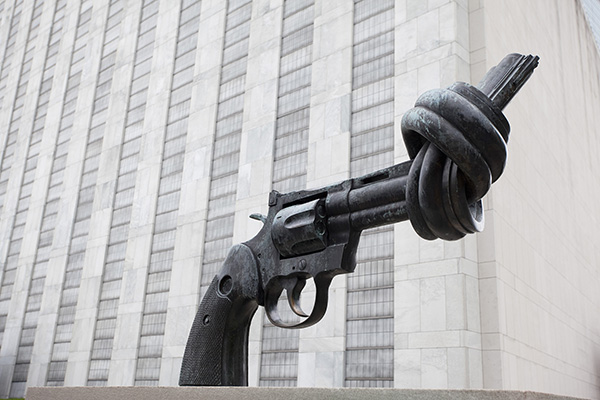 位于美国纽约联合国总部的雕塑“打结的手枪”。