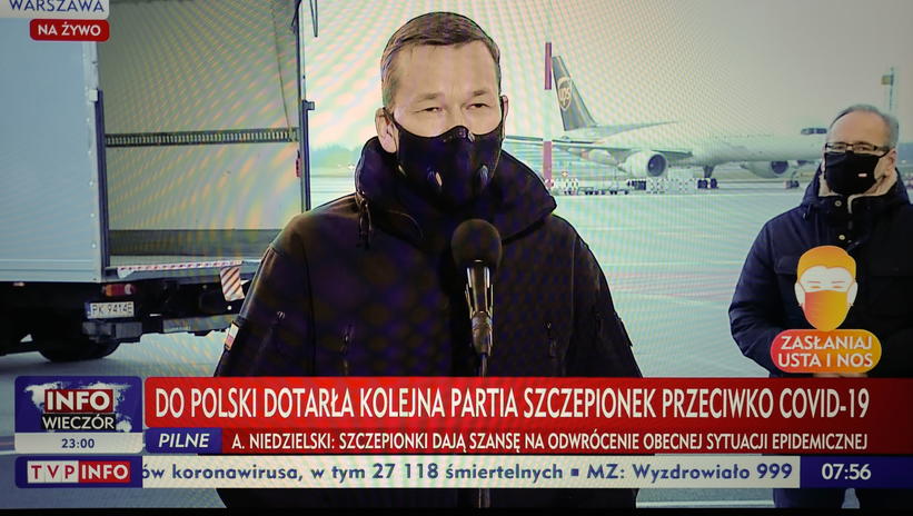当地时间28日,波兰总理莫拉维茨基宣布,当天早间第二批30万剂新冠疫苗抵达波兰,这些疫苗将在两日内分配至波兰超过250家医院。他强调,必须警惕第三拨疫情的到来,第三拨疫情可能比之前两拨更加危险,而疫苗为波兰战胜疫情带来了希望。