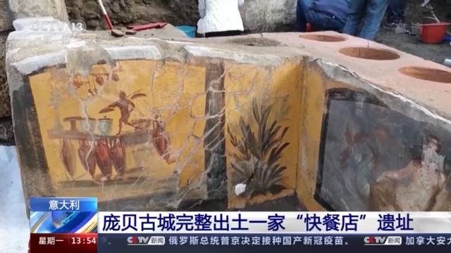 据庞贝古城考古负责人说,虽然庞贝古城先前已经出土了大约80个类似“快餐店”遗址,但这回是“首次完整出土热食类‘快餐店’遗址”。