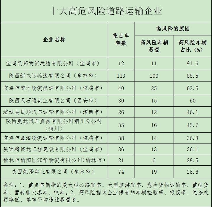 近日,陕西省公安厅交警总队对2020年以来导致道路交通事故的危险违法行为、典型道路交通事故以及高危风险道路交通运输企业进行了统计分析,将十大高危风险企业向社会公布,希望广大驾驶人要引以为戒,抵制交通陋习,遵守交通安全法规,掌握安全驾驶常识,安全文明驾驶。(总台央视记者 闫星光 耿晓斌)