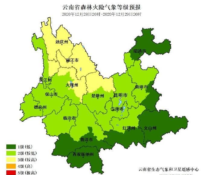 12月28日,云南省生态气象和卫星遥感中心发布发布了云南省森林火险气象等级预报,其中,迪庆、怒江东部、丽江、大理北部和东部、楚雄北部森林火险气象等级为3级(较高),其他地区为1~2级(较低)。气象部门提醒大家一定要提高火灾防范意识,注意生活生产用火安全,避免火灾的发生。