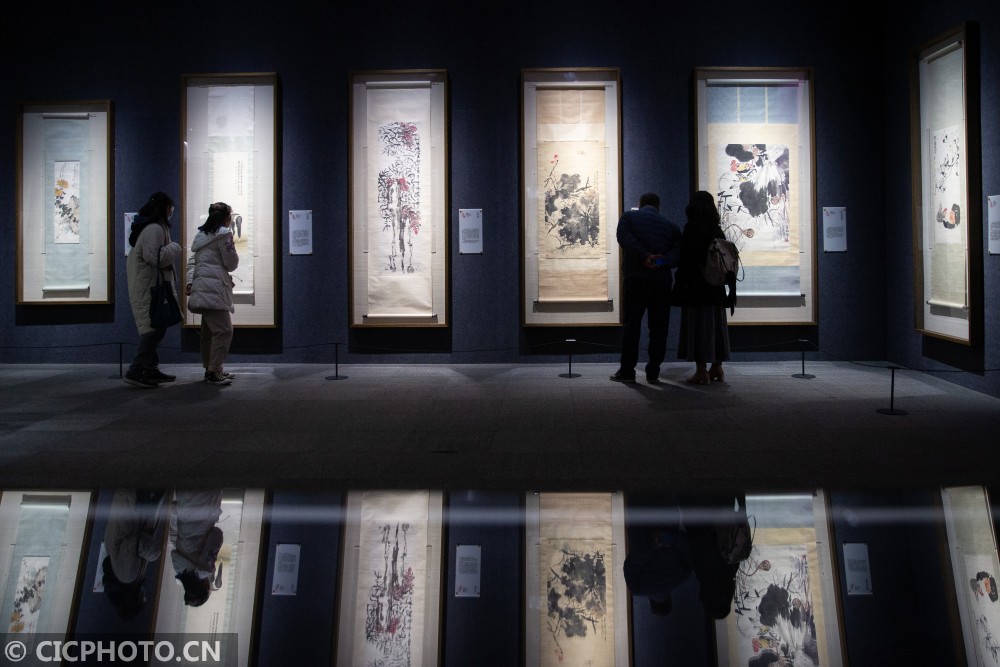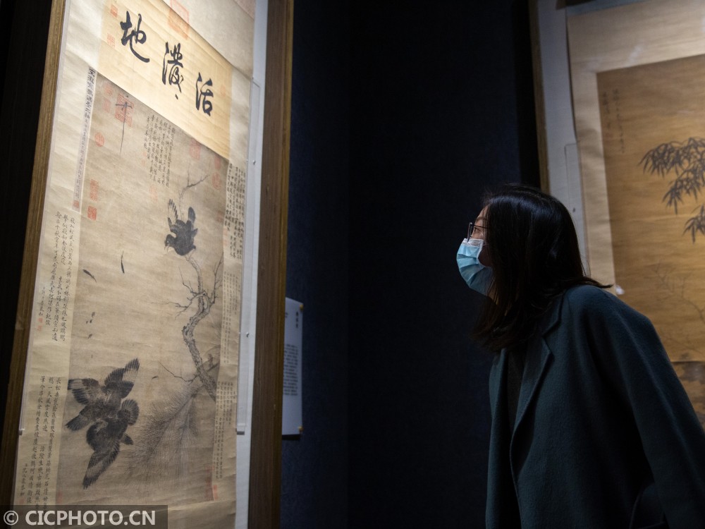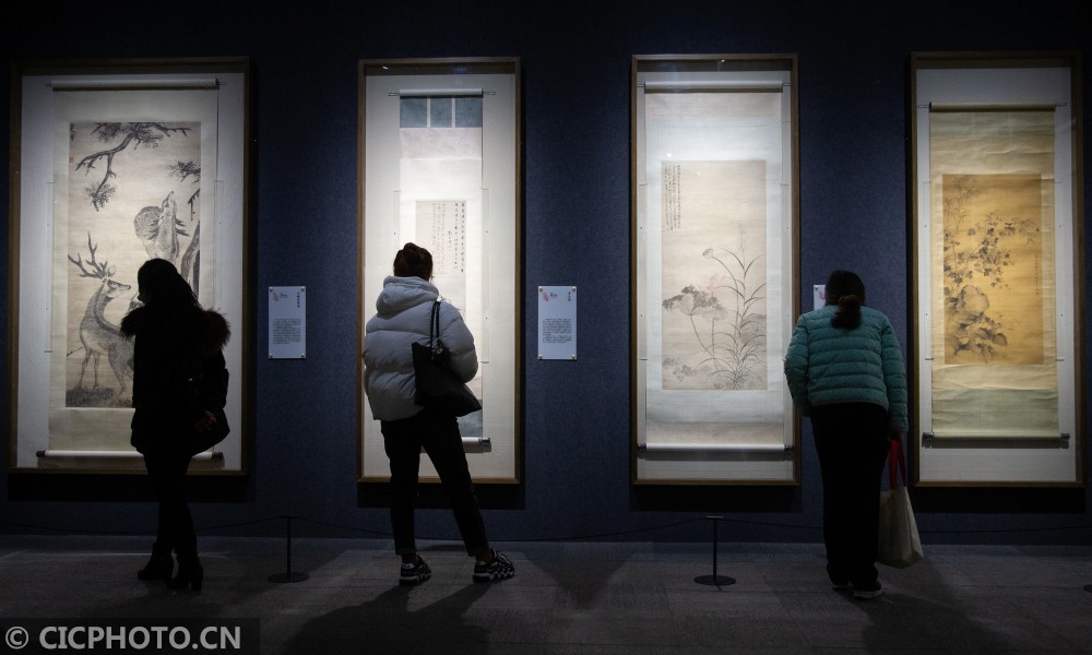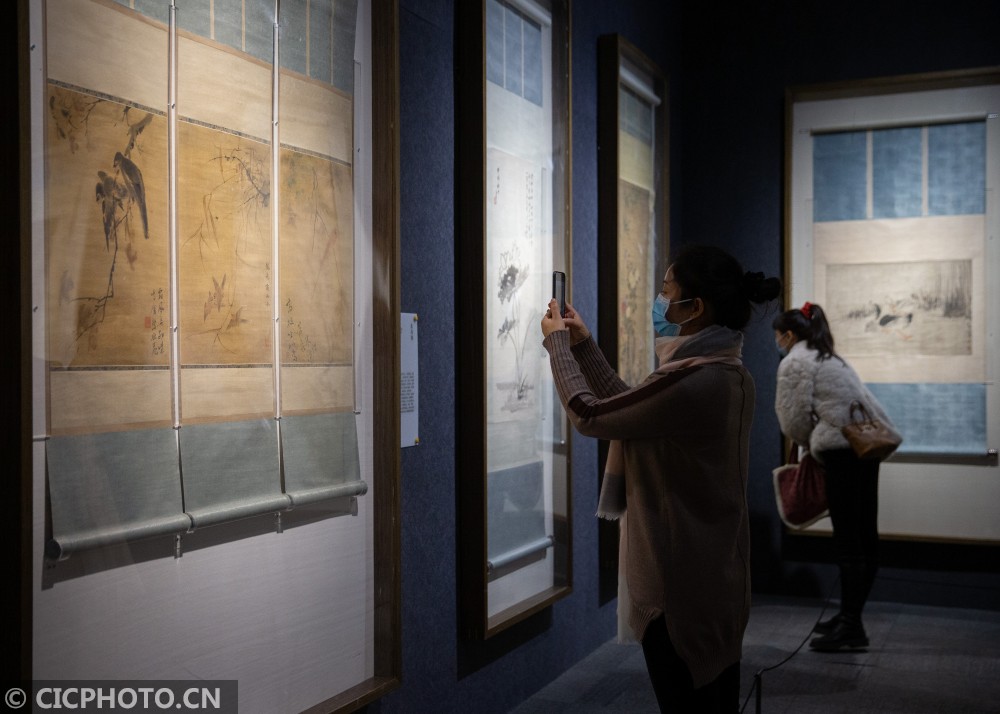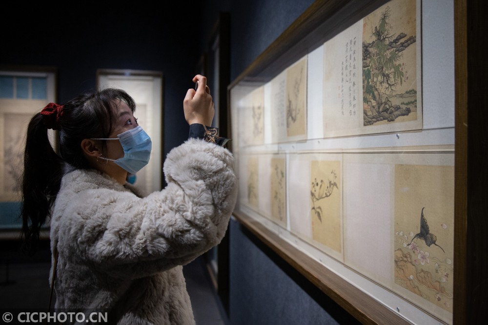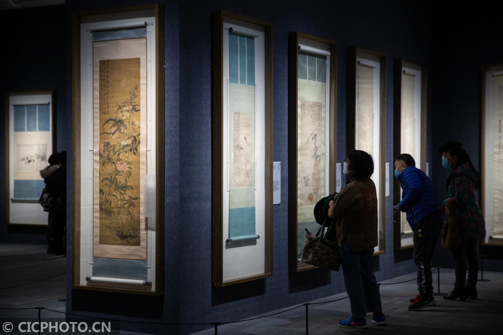 以上图片:2020年12月26日,观众在“百花呈瑞——南京博物院藏历代花鸟画迎春特展”上观看展品。CICPHOTO/苏阳 摄