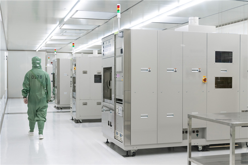 重庆万国半导体科技有限公司芯片封装车间的工人在工作。新华社记者 刘潺 摄
