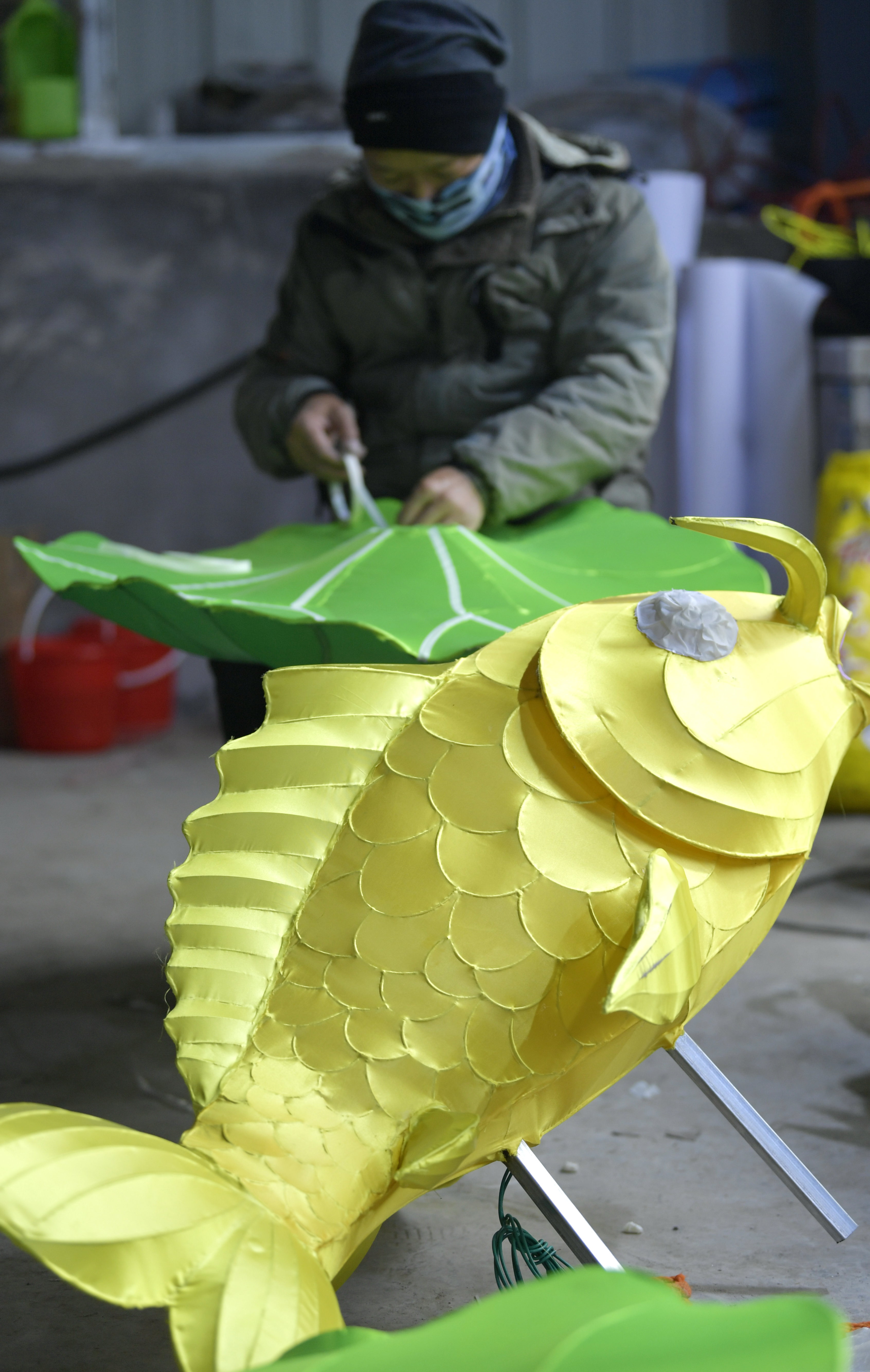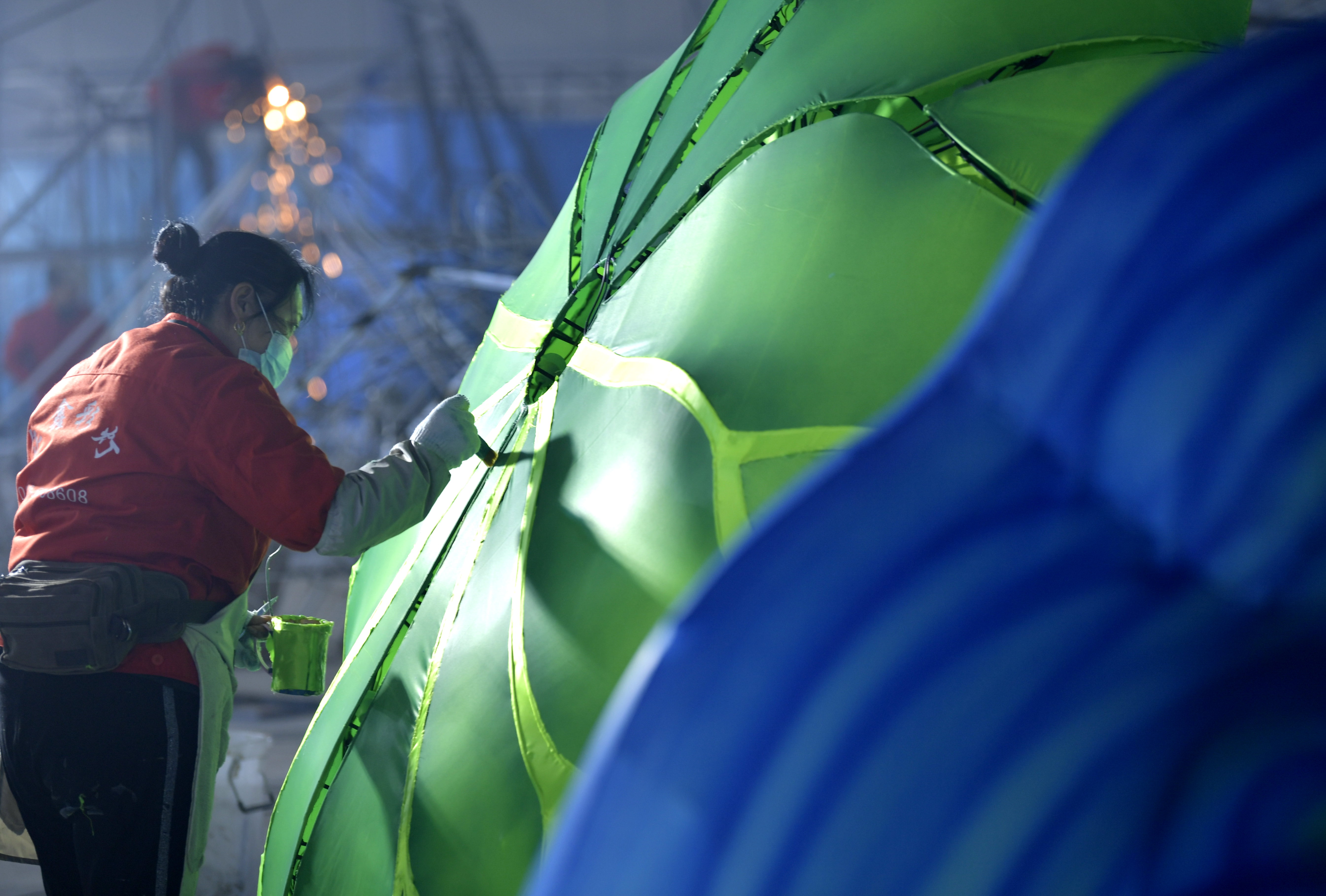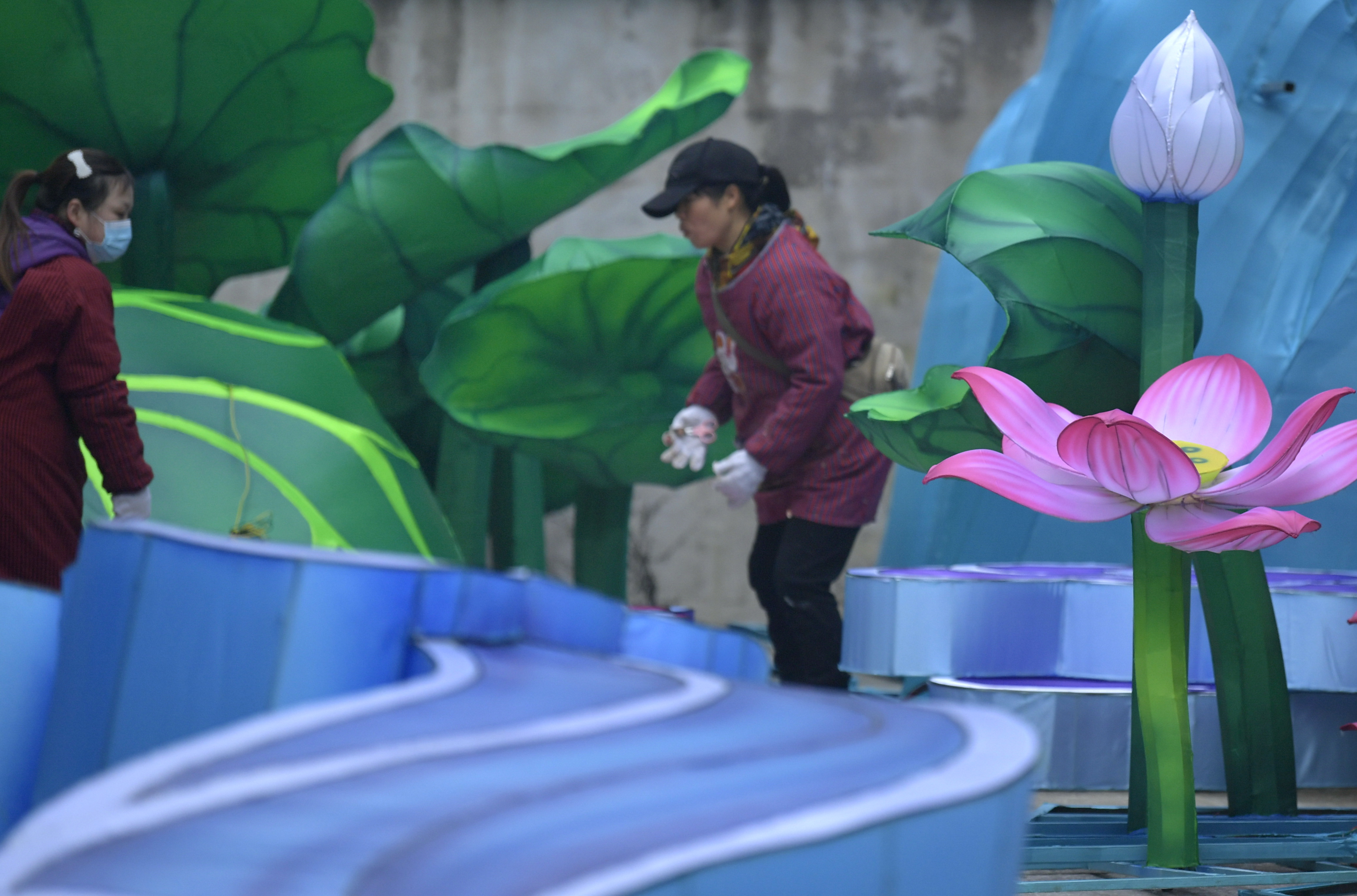 ↑12月28日,在湖北省宣恩县和平工业园区一家工厂的厂房里,工人在制作迎春彩灯。新年临近,湖北省恩施土家族苗族自治州宣恩县近百名彩灯制作工人加紧制作迎春彩灯,为即将在县城贡水河畔举办的迎春彩灯展作准备,以此丰富广大群众的节日文化生活。新华社发(宋文 摄)