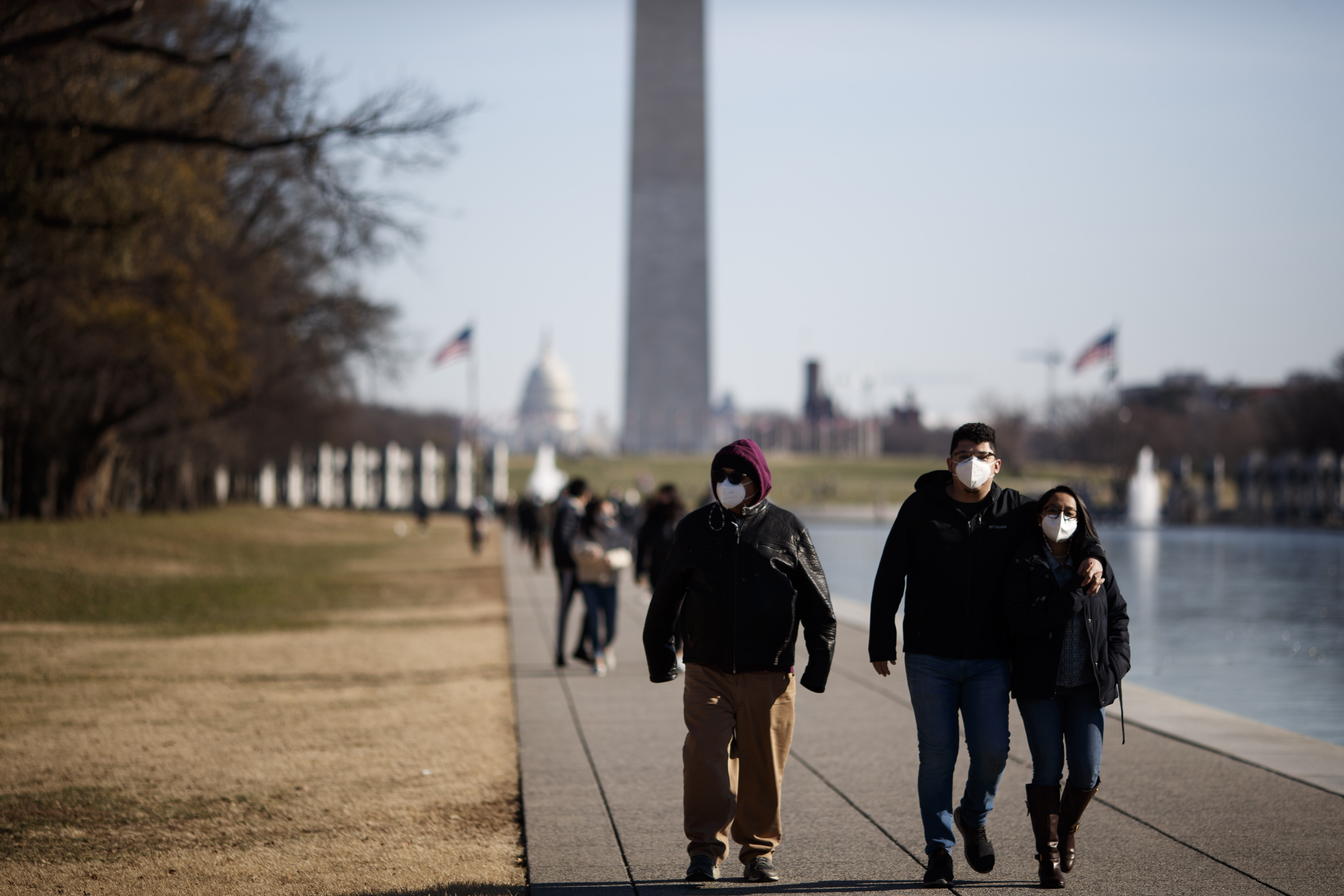 12月27日,人们在美国华盛顿的国家广场漫步。(新华社发,沈霆摄)