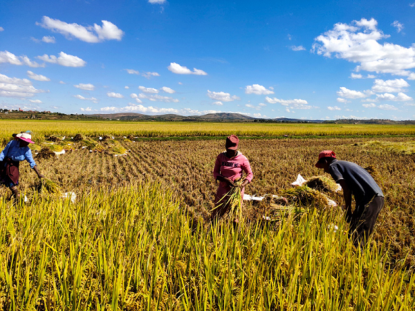 马达加斯加是一个东非岛国,很多中国农业专家将中国的杂交水稻技术带到了这里。在袁氏马达加斯加农业发展有限公司副总经理李艳萍眼中,在2020年,新冠疫情带来的影响远不如旱灾、雨季延迟大。以往,马达加斯加农民靠天吃饭,在中国专家的影响下,他们知道了“开沟修渠、做好水利、保水保肥,使用肥料才能获得高产”。如今,当地农民提高了农业生产能力和粮食安全水平,使当地粮食产量从2.8吨/公顷提高到了10.28吨/公顷