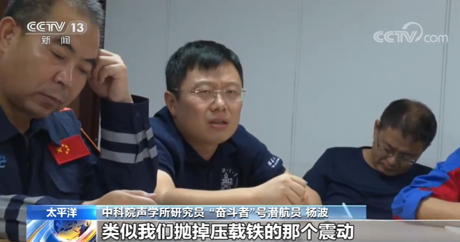 中科院声学所研究员 “奋斗者”号潜航员 杨波:我们当时明确在舱内感觉到一个类似我们抛掉压载铁的那个震动,有“梆”的一个声音,而且整个潜水器有个震动。