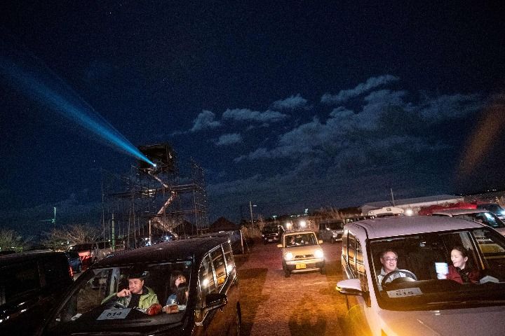 12月26日,在日本横须贺,人们在汽车电影院观影。新华社/法新