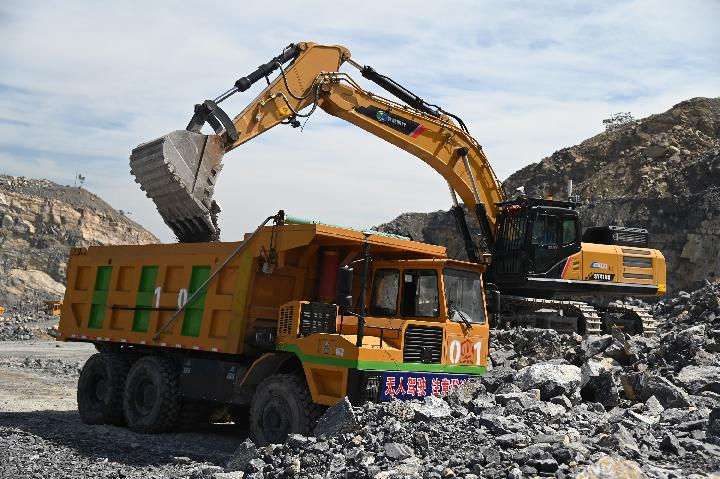 图为远程遥控挖掘机在焦煤集团千业水泥公司的露天矿区作业。 新华社记者张浩然 摄