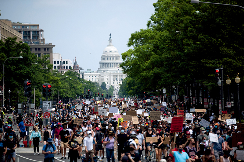 6月6日,人们在美国华盛顿国会大厦附近游行 刘杰摄/本刊