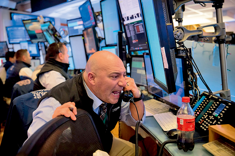 3月18日,交易员在美国纽约证券交易所工作。当天,纽约股市出现当月的第四次熔断 郭克摄/本刊