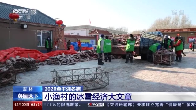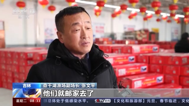 查干湖渔场副场长 张文平:大部分的游客都是到我们这个鱼产品超市选完鱼,到门口这几家快递哪个寄得好,他们就邮家去了,剩下他自己开车接着往下一站,他还没到家,鱼就到家了。