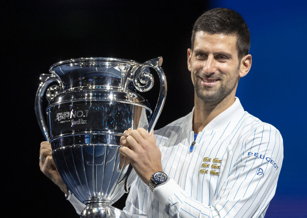 11月15日,焦科维奇获颁2020年ATP年终世界排名第一奖杯。新华社记者韩岩摄