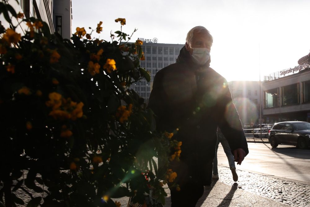 11月27日,在德国首都柏林,一名男子戴口罩出行。新华社记者单宇琦摄
