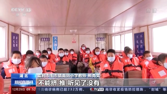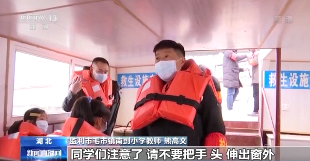 监利市毛市镇南剅小学教师 熊高文:同学们注意了,请不要把手、头伸出窗外,上(下)船的时候,一定要注意安全。不能挤、推,听见了没有?