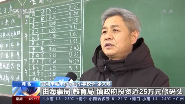 监利市毛市镇南剅小学校长 张文芳:2014年9月前,学生上学靠两艘木船渡河,船小,学生和家长经常有拥挤落水的情况发生。地方海事局为我们赠送了一艘专用船只,由海事局、教育局、镇政府投资近25万元修码头。