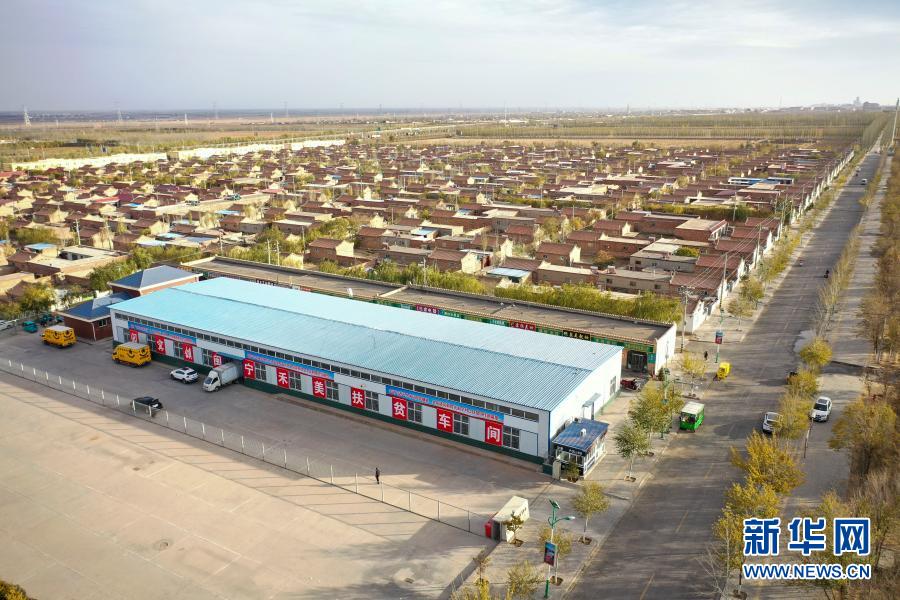 这是在宁夏银川市永宁县闽宁镇拍摄的闽宁禾美电商扶贫车间(11月5日摄 无人机照片)。