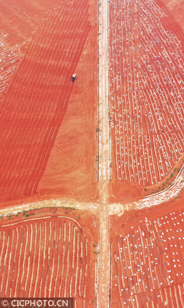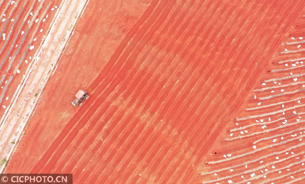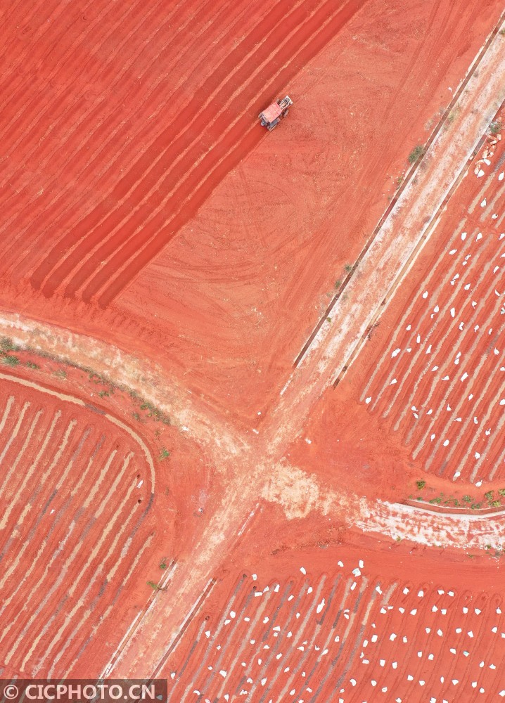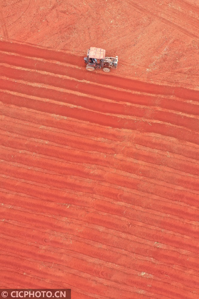 以上图片:2020年12月25日,湖南省永州市宁远县太平镇坪石头村种植基地里,农民驾驶农机在整地起垄。CICPHOTO/黄春涛 摄