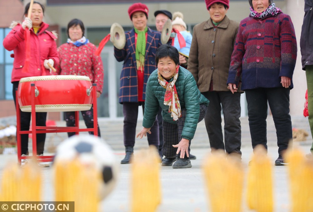 以上图片:2020年12月28日,在山东省临沂市沂南县依汶镇后峪子社区拍摄的农民趣味运动会现场。CICPHOTO/王彦冰 摄