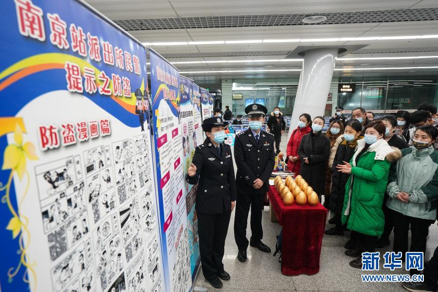12月29日,南京站派出所民警向旅客宣讲“防盗防骗”知识。