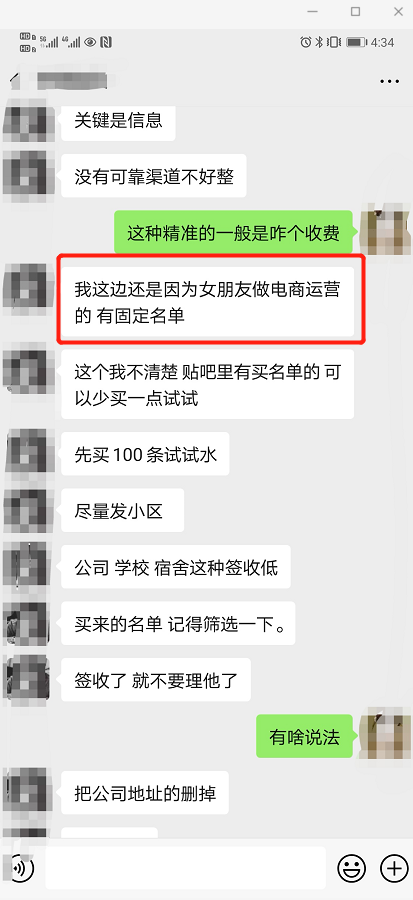 “一些个人信息来源于快递,电商平台也有‘内鬼’。”一内部人士告诉记者。暗访中,一个向记者卖“料”的人说“女朋友做电商运营,有固定名单”。