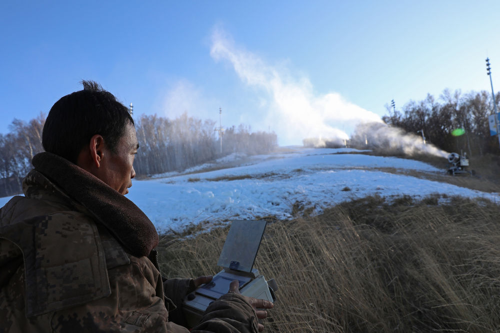 10月17日,工作人员在河北省张家口市崇礼区太舞滑雪场操作造雪机造雪。新华社发(武殿森摄)