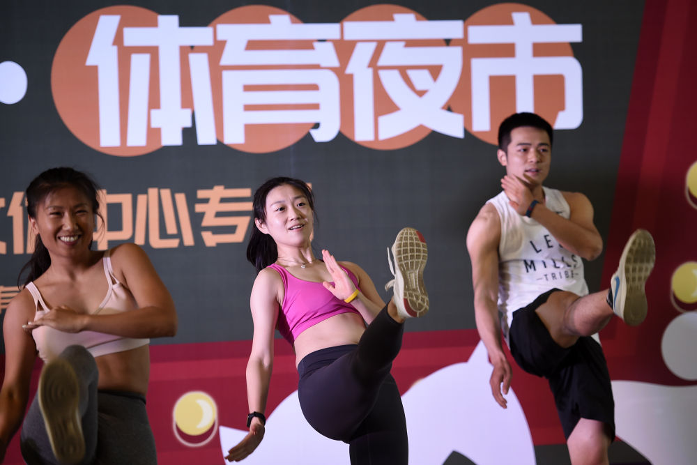 5月22日,苏州一家健身俱乐部的健身教练们在活动中进行健身舞表演。新华社记者 韩瑜庆 摄