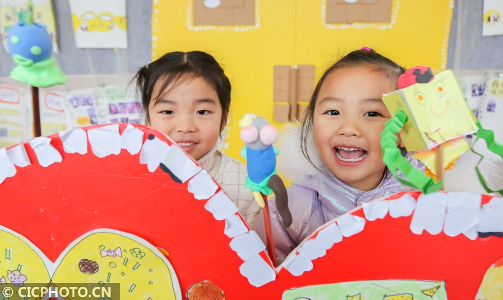 ↑2020年12月29日,在江苏如皋经济技术开发区实验幼儿园,小朋友在表演木偶剧。CICPHOTO/徐慧 摄
