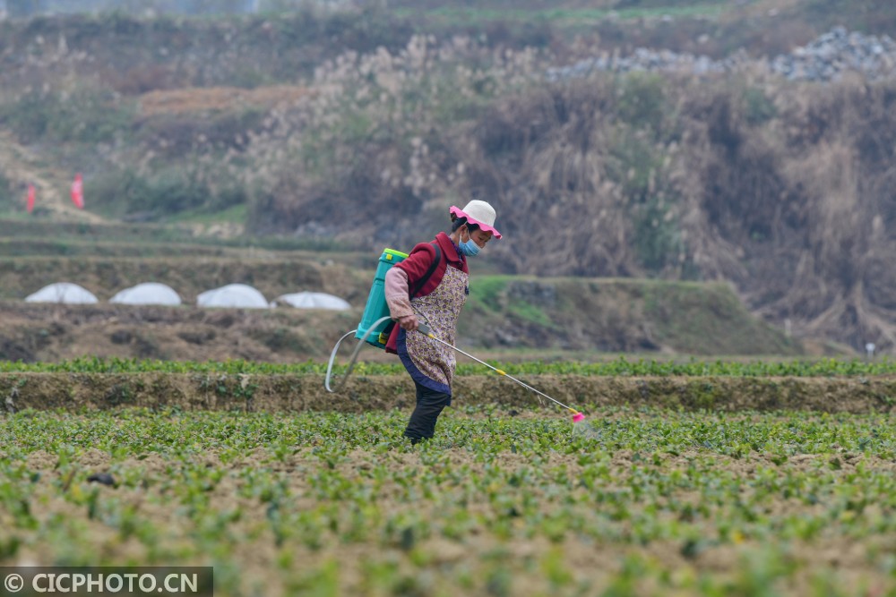 ↑2020年12月26日,重庆市酉阳土家族苗族自治县龙潭镇柏香村村民在油茶育苗基地管护油茶苗。CICPHOTO/冉川 摄