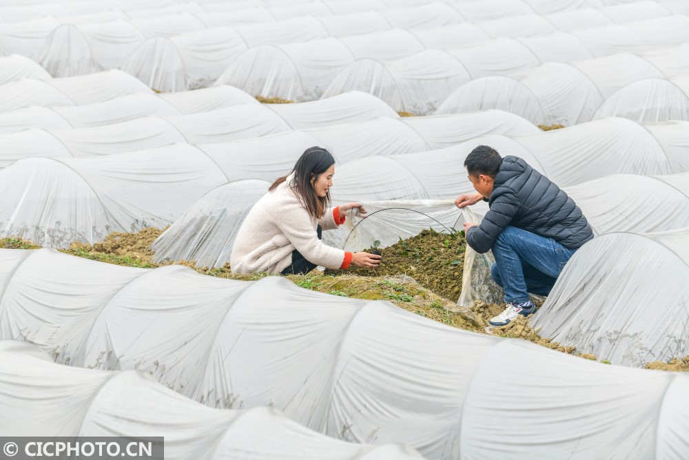 ↑2020年12月26日,重庆市酉阳土家族苗族自治县龙潭镇柏香村村民在油茶育苗基地补栽油茶苗。CICPHOTO/冉川 摄