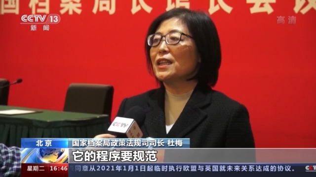 国家档案局政策法规司司长 杜梅:我们现在是对于电子档案构成的一个合法要件,比如说它要来源可靠,它的程序要规范,它的各个要素要合规,那么只要符合这几项,它就具有跟传统载体一样的法律效力,那么可以以电子的形式作为证明来使用。