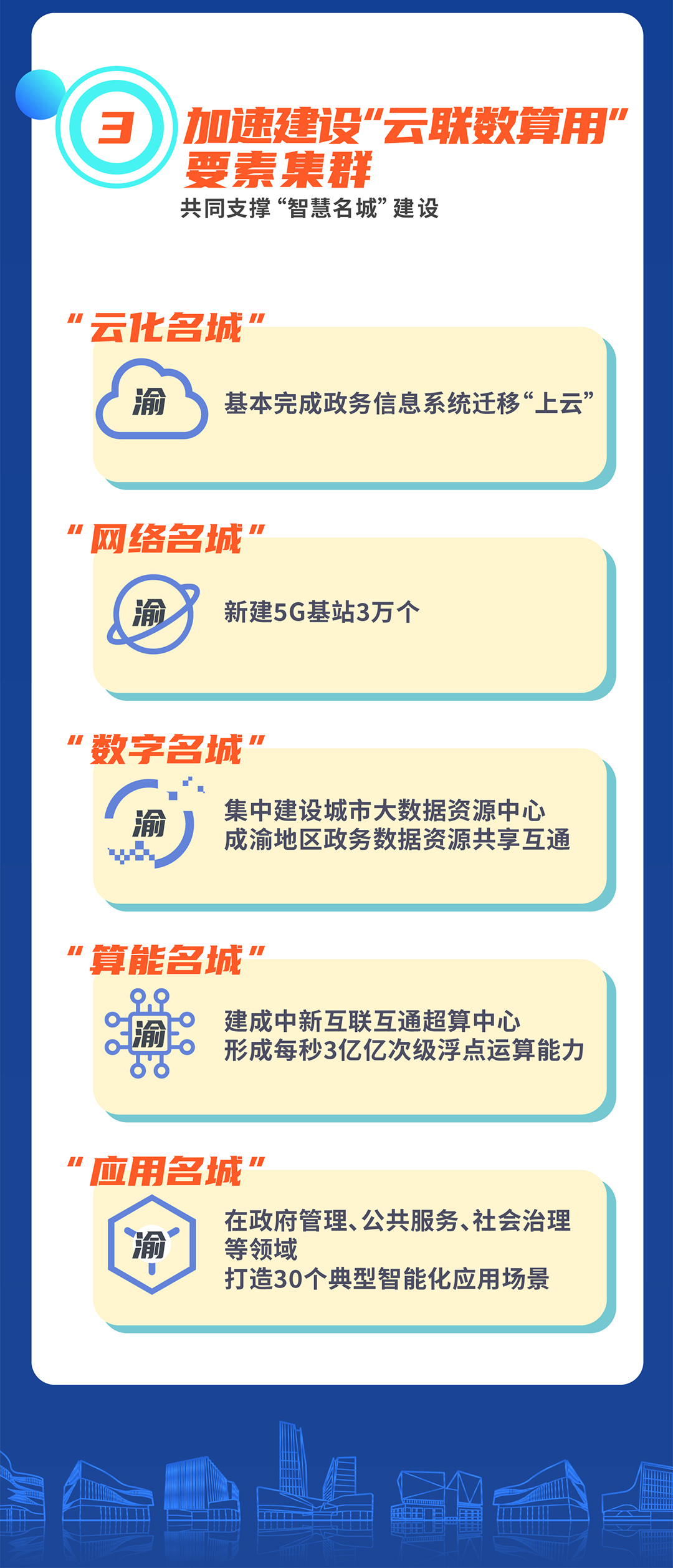 重庆市:“芯屏器核网”做大做强“智造重镇”;“云联数算用”共同支撑“智慧名城”。