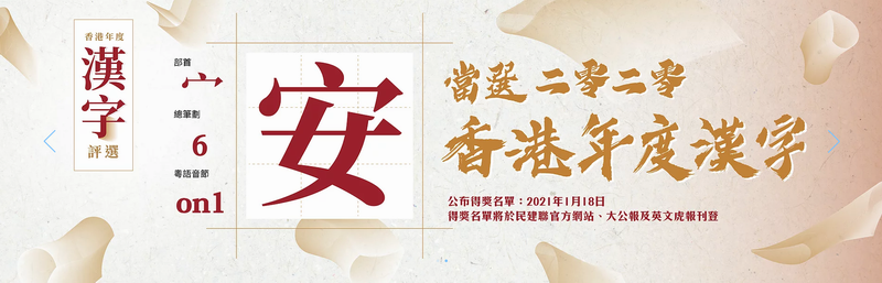 28日,香港民主建港协进联盟,即“民建联”公布香港2020年年度汉字,“安”字以5710票当选,“疫”和“撑”分列第二、三位。这是民建联第七次举办香港年度汉字评选活动,总投票人数达15103人。