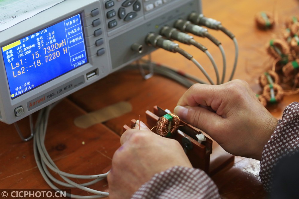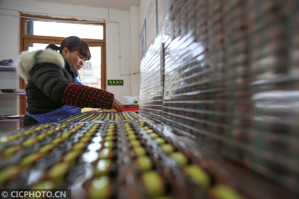 ↑2020年12月26日,贵州省毕节市七星关区柏杨林街道易地扶贫搬迁安置点一就业扶贫车间内,工人在加工电子配件。CICPHOTO/王纯亮 摄
