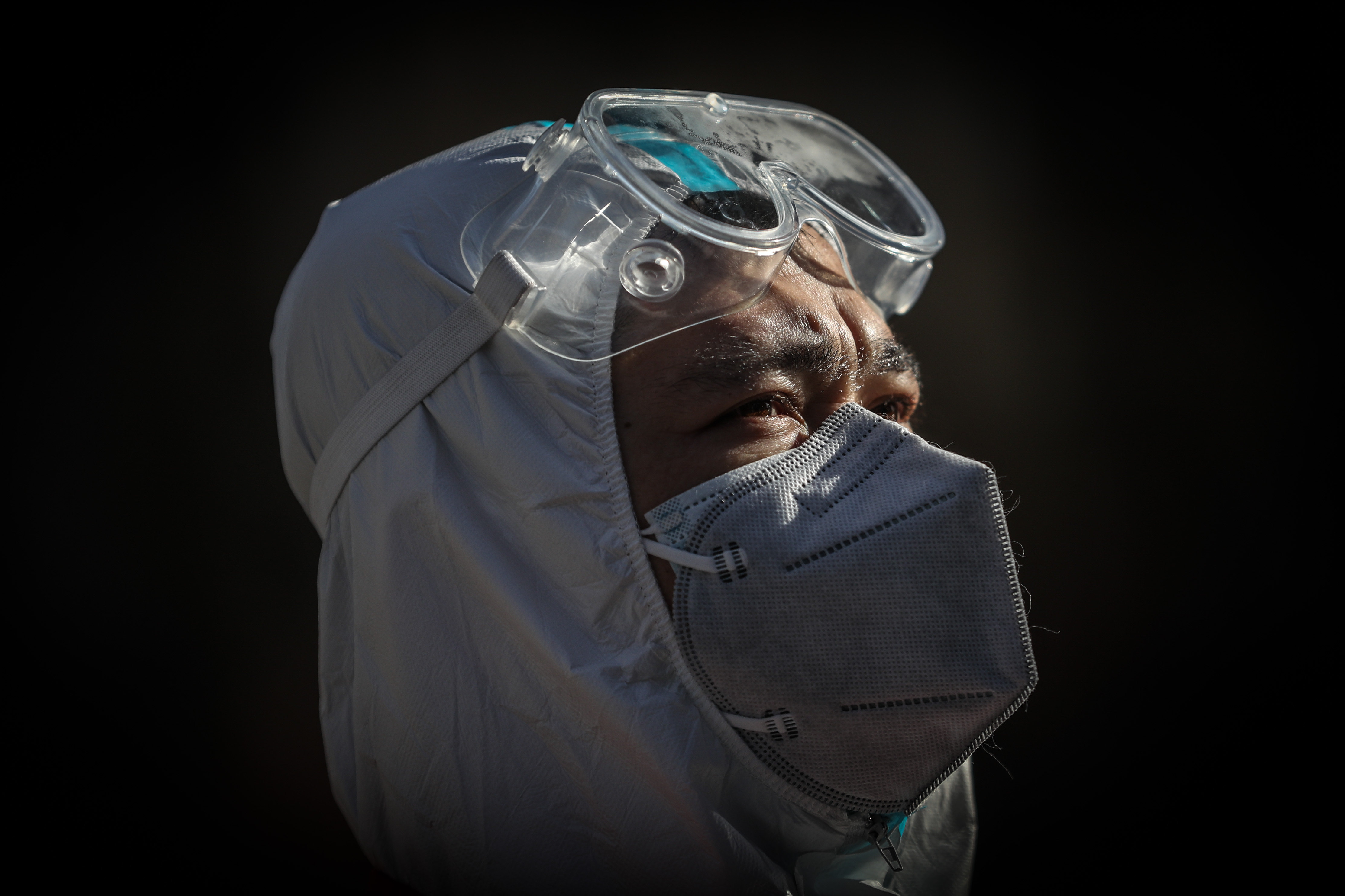 记者见到36岁的张恒时,他全副武装穿着厚重的白色防护服,眉毛和睫毛上的汗水都已经冻成了白霜。