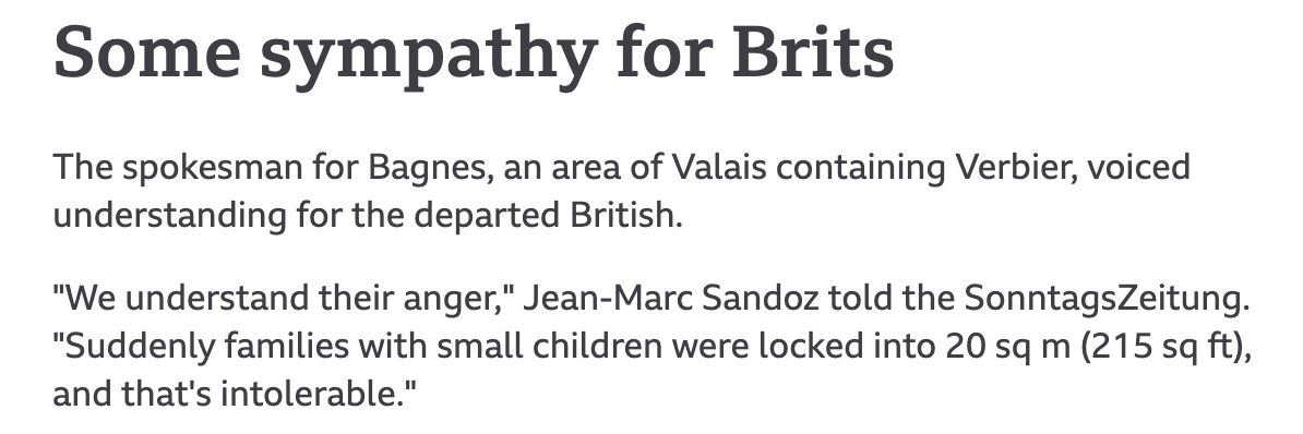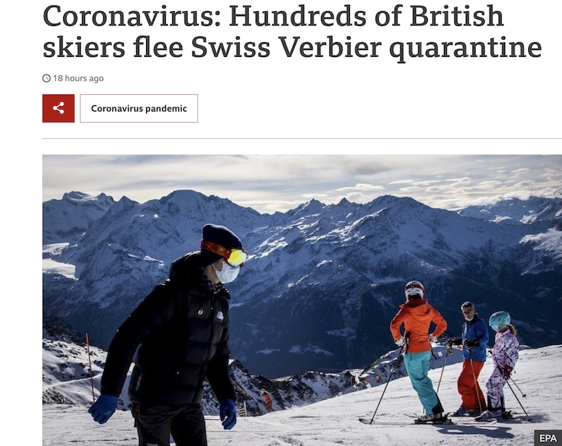 △BBC报道“百余名游客逃离韦尔比耶的滑雪度假区”