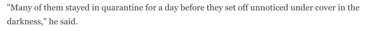 隔离令下达后,420名英国客人中有大约200人“只老老实实地隔离了一天”,就“趁着夜色不告而别了”;还有当地媒体报道说,“连夜逃跑”的英国游客可能有350人之多。