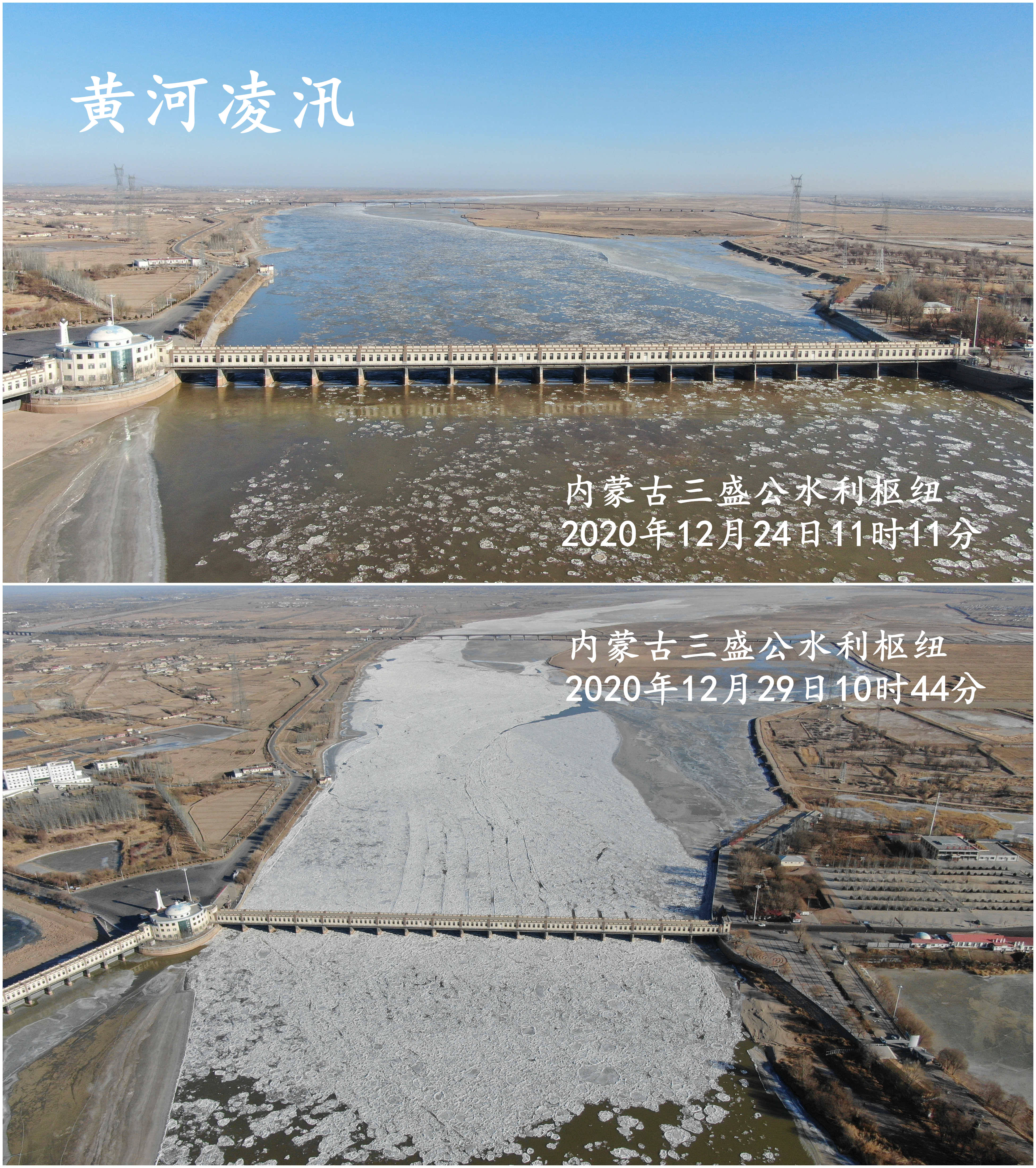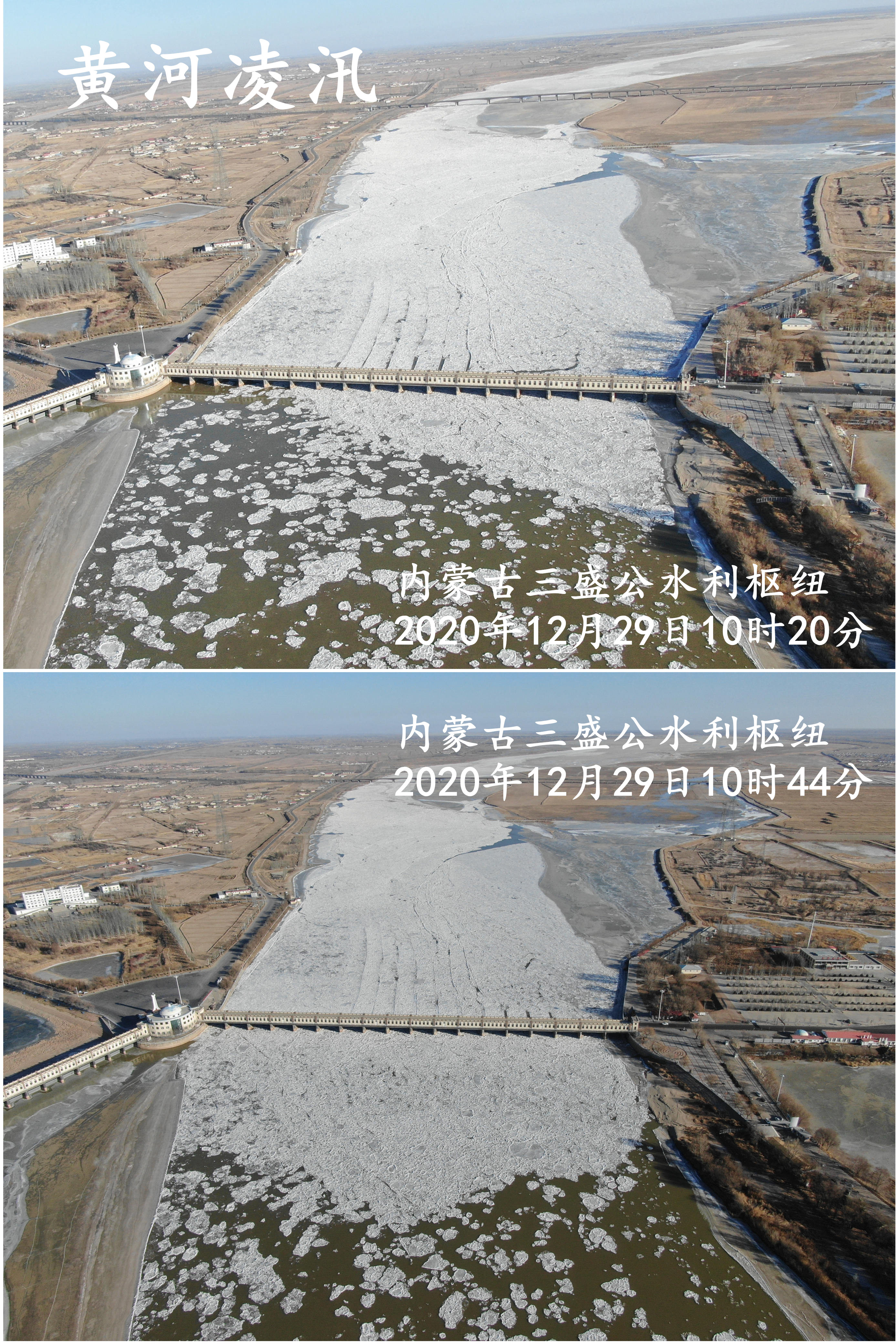 寒潮袭来,黄河封冻加速。其中,内蒙古河段冰封河面的上首位置,已经到达内蒙古三盛公水利枢纽附近。从航拍的照片可见,黄河封冻和流凌的堆积速度加快。