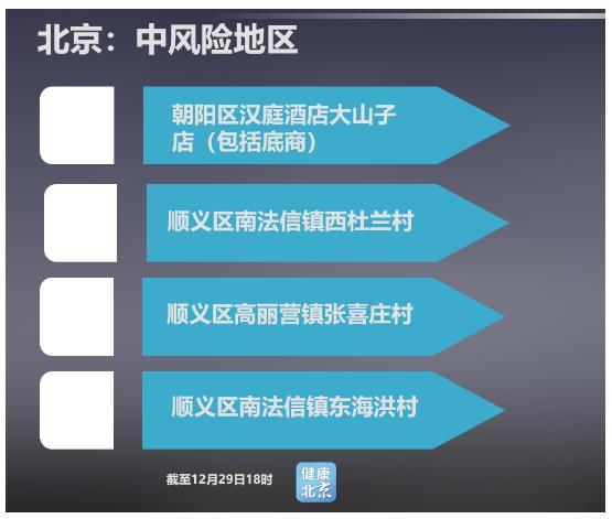北京新型冠状病毒肺炎疫情防控工作领导小组医疗救治和防院感组通报,经市疾控中心评估,按照《北京市新冠肺炎疫情风险分级标准》,从2020年12月29日起,新增顺义区南法信镇东海洪村为中风险地区。详情>>>
