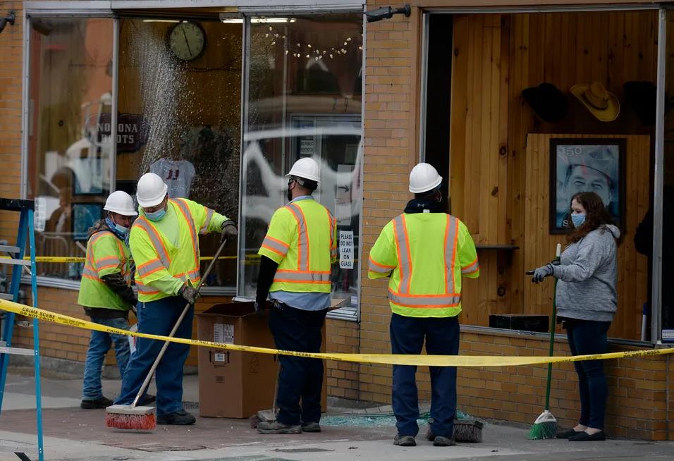 △28日,爆炸发生3天后,施工人员对爆炸现场进行清理(图片来源:《今日美国》)
