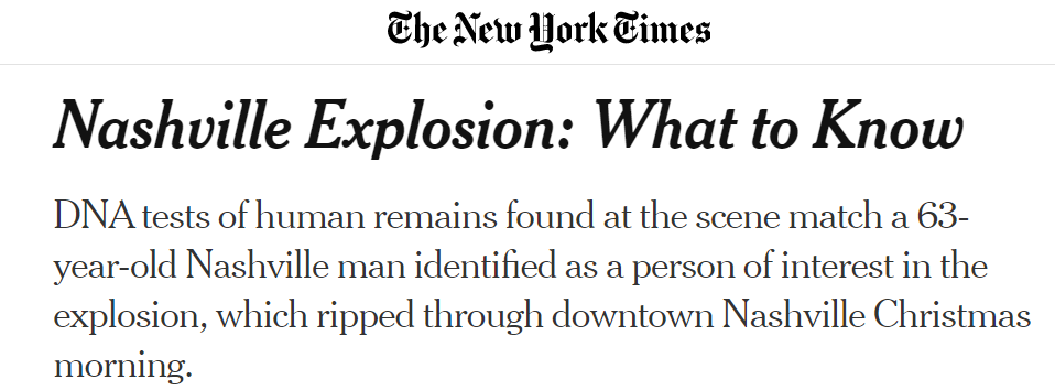 △截至28日,《纽约时报》对纳什维尔爆炸案进行了跟踪报道和动态更新,更新信息中记载了特朗普与拜登双方对该事件的反应与相关表态。(图片来源:《纽约时报》)