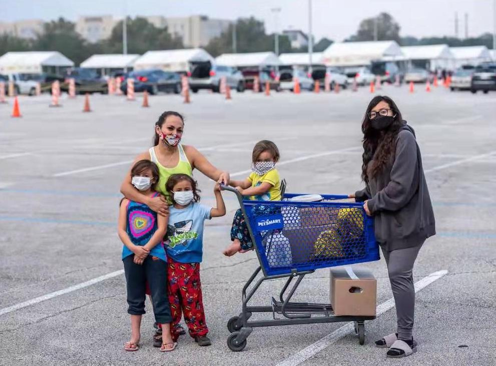 △佛罗里达中部的食品银行对民众分发救济食物(图片来源:《时代周刊》)