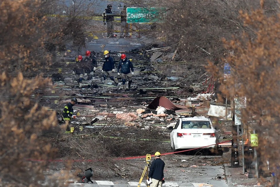 △纳什维尔爆炸案发生后,爆炸现场一片狼藉。(图片来源:《今日美国》)
