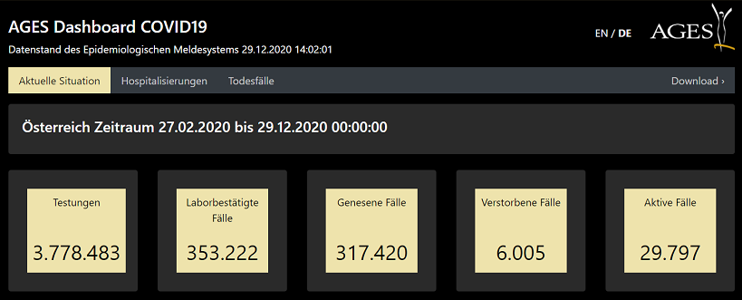 当地时间12月29日14时,奥地利卫生部数据显示,过去24小时该国新增新冠肺炎确诊病例1836例,累计确诊353222例;新增死亡病例133例,累计死亡6005例;累计治愈317420例。