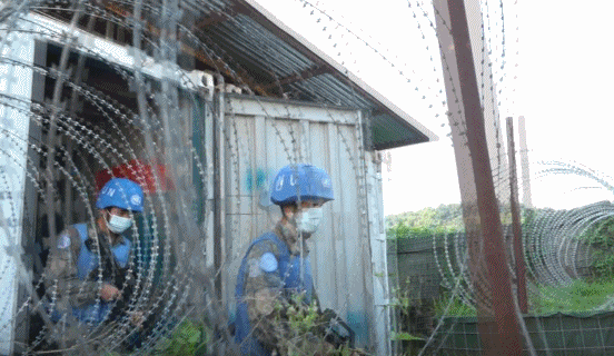 在应急分队驱赶震慑下,不法分子慌乱丢下砖块棍棒逃离现场。为确保营区设施和官兵人身安全,维和工兵分队常态组织防卫演练,持续强化官兵战备意识,时刻保持戒备状态,全面提升分队官兵指挥控制、协调配合、快速处置等能力。
